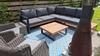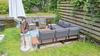 - Hoekloungebank met zijtablet, salontafel, zit- en rugkussens