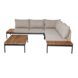 - Set bestaat uit een hoekloungebank met zijtafels, bijzettafel, zit- en rugkussens