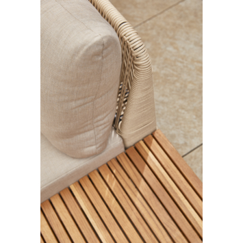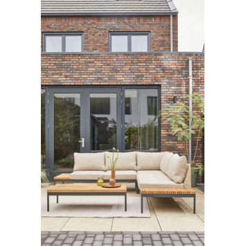 Dankzij de zachte beige kussens geniet je urenlang van gezellig samenzijn of pure ontspanning in de zon. De combinatie van natuurlijk teakhout en het strakke metalen onderstel geeft de set een moderne, maar warme uitstraling.
