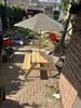 - Stevige tafel met twee bijpassende banken