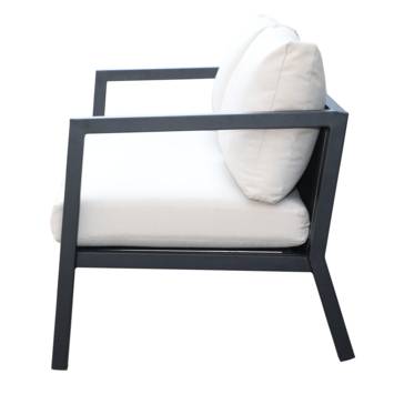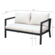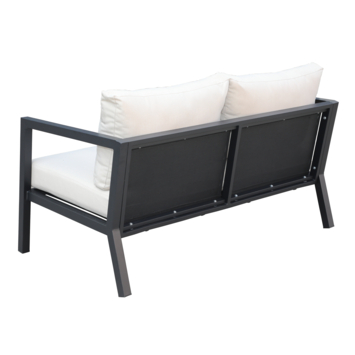 De bank wordt als bouwpakket geleverd, zodat je deze snel kunt monteren. Inclusief witte zit- en rugkussens, die zorgen voor extra comfort en een luxueuze uitstraling. Het metalen frame zorgt ervoor dat de bank bestand is tegen de weersomstandigheden, waardoor hij lang meegaat.