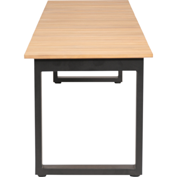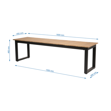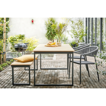 - Zitting in light teak gebeitst acacia hout en zwart poedergecoat metalen onderstel