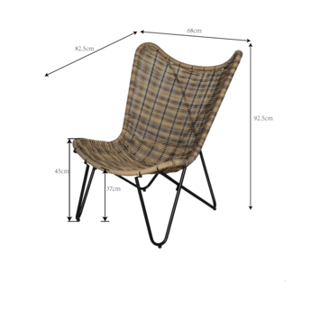 De Wakefield tuinstoel Belize in bruin is de perfecte keuze voor wie op zoek is naar een unieke en comfortabele stoel voor de tuin of het terras. Met een zithoogte van 37 cm en ruime afmetingen van 68 cm breed en 83 cm diep, biedt deze vlinderstoel voldoende ruimte om heerlijk te ontspannen. De zitting is vervaardigd uit bruin wicker, wat de stoel een natuurlijke en stijlvolle uitstraling geeft die prachtig past bij een groene tuin. Het stevige zwart metalen onderstel zorgt voor een moderne en stabiele afwerking, waardoor de stoel niet alleen mooi oogt, maar ook langdurig comfortabel blijft.