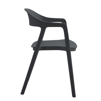 De zwarte kleur geeft de stoel een eigentijdse uitstraling die goed combineert met verschillende tuinstijlen, van modern tot klassiek. Het kunststof materiaal is weerbestendig, waardoor de stoel perfect geschikt is voor buitengebruik.