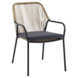 De zitting van natural kleurig wicker zorgt voor een natuurlijke en stijlvolle uitstraling, terwijl het zwart gecoate metalen frame stevigheid en een modern accent toevoegt. De stoel wordt geleverd met een antraciet zitkussen, waardoor je direct geniet van extra comfort.