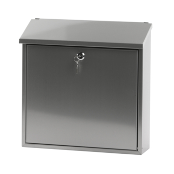 Brievenbus voor wandbevestiging met cilinderslot. De inworpopening (35,8 x 4 cm) zit onder de klep zodat de post beschermd is.