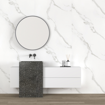 Met deze douchewand in witte marmeren look haal je een uiterst mooie wand in huis! Hij is gemaakt van sterk PVC en is eenvoudig en snel te plaatsen, doordat deze geen droogtijd heeft en zelfs op bestaande tegels geplaatst kan worden. De matte afwerking geeft de wand een strak karakter. Dé ideale wand om jouw douche een unieke en elegante make-over te geven! Goed om te weten: deze douchewand is ook te verkrijgen in wandtegels van 61 x 30,5cm.