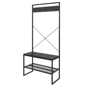 Ben je op zoek naar een keer wat anders dan de gewone kapstok, dan is dit wandrek een perfecte oplossing. Naast de ruimte om de jassen kwijt te kunnen is er onder ook een plank waar je de schoenen op kwijt kan. Hij is gemaakt van een metalen frame in combinatie met houten planken.