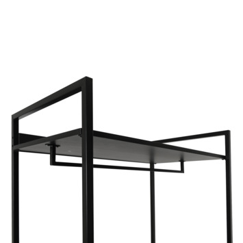 Wandrek Nigel is een multifunctioneel rek. Je kan het gebruiken als extra garderoberuimte of gebruik het in de hal. Het wandrek is samengesteld uit een metalen frame met houten planken.