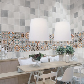 Wandtegel Amadora Wit 13x13 cm 0,5 m² is een prachtige mix tussen traditioneel en modern. De tegels hebben een kalkachtige uitstraling en zorgen daarmee voor een zeer speels effect in je interieur.