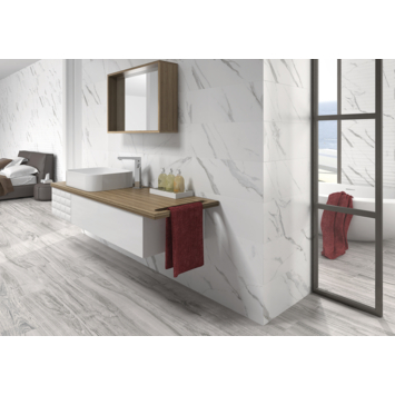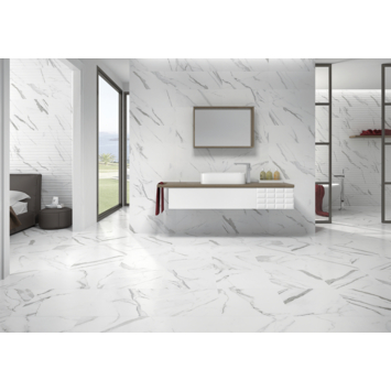 Deze mooie marmerlook tegels in het formaat 25x65 geven de badkamer een echt luxe uitstraling. De tegels zijn ongerectificeerd en geschikt voor de wand. De tegels hebben een uniek patroon met grijze aders en een matte afwerking, bijna niet te onderscheiden van orgineel marmer! De tegels zijn geschik voor iedere ruimte, zowel nat als droge ruimtes.