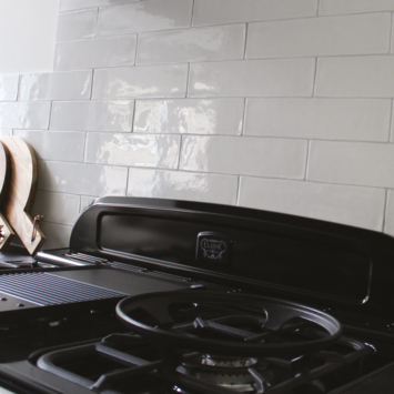 Tegel is niet glimmend zoals op de foto met fornuis, maar mat.