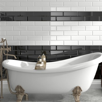 Wandtegel Metro XL Hoogglans Zwart 15x45 cm 1 m² is een langwerpige metrotegel met afhellende randen en is geschikt voor de wand. Nu verkrijgbaar in het grotere formaat 15x45 cm en in een glanzende en matte uitvoering. De strakke tegels passen in diverse interieur stijlen.