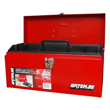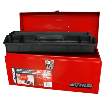 De rode Waterloo gereedschapskoffer is een algemene en daarom populaire gereedschapskist. Deze metalen gereedschapskoffer met kunststof uitneembare tray maakt het opbergen van uw gereedschap overzichtelijk en makkelijk. Door de losse verdeelschotten in de tray is de koffer geheel naar eigen wens in te delen. Daarnaast geeft hij natuurlijk bescherming aan al uw gereedschap en materialen. Dit topmodel heeft in de loop van de jaren bewezen in de praktijk een goede functionele koffer te zijn en daarom is het de gereedschapskoffer voor iedere klusser.