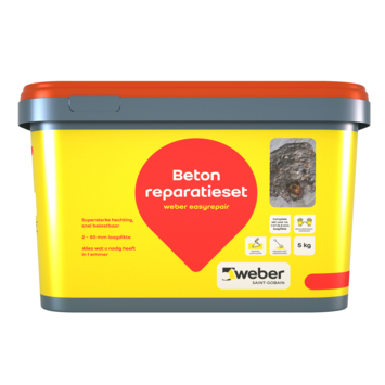 Met de Weber Beamix Easyrepair betonreparatie 5 kg set herstel je snel en eenvoudig beton. De set bevat alles wat je nodig hebt: van de krachtige reparatiemortel tot de benodigde gereedschappen zoals een mengspindel, troffel en handschoenen. Deze mortel heeft een uitstekende hecht- en druksterkte, waardoor het ideaal is voor het repareren van betonnen wanden, balkonplaten, betonranden en ruw metselwerk. Of je nu binnen of buiten werkt, de set is geschikt voor laagdiktes van 2 tot 50 mm en biedt een snelle oplossing voor betonreparaties.