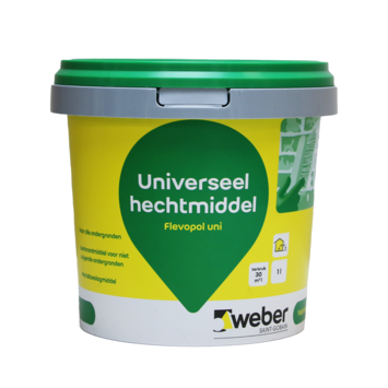 Weber Beamix flevopol 1L is een hechtmiddel dat gebruikt kan worden voor diverse toepassingen. Zo regelt het hechtmiddel de porositeit van de ondergrond. Ook versterkt het de oppervlaktecohesie van de ondergrond en verbetert het de hechting. Je kunt het middel gebruiken op wanden en vloeren. Zelfs gipsgebonden vloeren kunnen met het hechtmiddel worden behandeld. Je kunt het als voorstrijkmiddel op vrijwel alle sterk of zwak zuigende ondergronden aanbrengen. Het hechtmiddel wordt geleverd in een verpakking met een inhoud van 1 L. Aanbrengen kan met behulp van een roller, kwast, handveger of spuit. Kortom, verbeter ondergronden met Weber Beamix flevopol 1l.