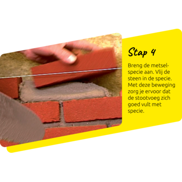 - Meer specie; 20 kg = 28 kg standaard metselmortel