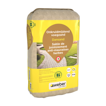 Weber Beamix Dansand is uitermate geschikt voor nieuw aan te leggen betonnen (sier)bestrating. Dit voegzand zorgt voor een dichte voeg, waardoor onkruid tussen de bestrating geen enkele kans meer maakt. Weber Beamix Dansand maakt aanvullende onkruidbestrijding overbodig. Weber Beamix Dansand is alleen geschikt voor nieuw aan te leggen betonnen (sier)bestrating. Het product geeft een dichte, maar niet-verharde voeg. Dansand wordt geleverd in een zak van 20 kilogram.