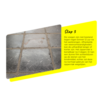 - Makkelijk aan te brengen, in de voegen vegen en benevelen