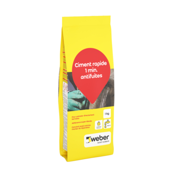 Met Weber Beamix repair snelcement waterstop 1 kg repareer je snel en eenvoudig steenachtige ondergronden, zowel binnen als buiten. Het snelcement is krimparm, vrij van chloride en hardt razendsnel uit. Het wordt geleverd in een verpakking met een gewicht van 1 kg. Niet alleen kun je het snelcement gebruiken voor de montage van sanitair en het vastzetten van leidingen, ook is het geschikt voor het dichten van gaten en scheuren en het stoppen van lekkages. Het snelcement kan in sommige gevallen zelfs op het lek worden gedrukt totdat het aanwezige vocht is gestopt. Niet voor niets is met Weber Beamix repair snelcement waterstop 1 kg beton binnen korte tijd weer als nieuw.