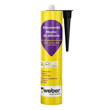 De Weber Beamix siliconenkit antraciet 300 ml is perfect voor het afdichten van voegen in vloer en wand. Deze zuurvrije siliconenkit hecht uitstekend op keramische ondergronden en is geschikt voor uitzettings- en aansluitvoegen. Dankzij de schimmelwerende eigenschappen blijft het resultaat hygiënisch en langdurig mooi. Met een neutrale geur en de mogelijkheid om de kit glad af te werken, is deze gebruiksvriendelijk en veelzijdig. Verkrijgbaar in antraciet, lichtgrijs, grijs en wit.