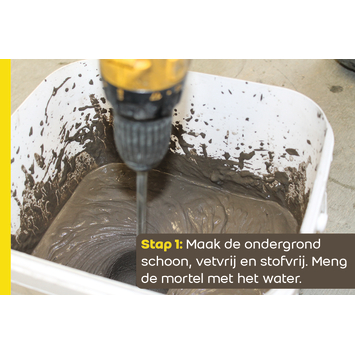 Weber Beamix repair vloerreparatie 2 kg is een snel verhardende reparatiemortel. De mortel kan aardvochtig of vloeibaar aangemaakt worden en is daardoor geschikt voor zowel horizontale als hellende vloeren. De reparatiemortel kan binnen en buiten worden gebruikt in laagdiktes variërend van 1 tot 50mm. Het vloerreparatiemiddel wordt geleverd in een verpakking met een totaalgewicht van 2kg. De mortel bestaat uit een zand- en cementmengsel met kunststofbindmiddelen en diverse additieven die de verwerkbaarheid verbeteren. Je brengt de mortel eenvoudig en snel zelf aan. Met de reparatiemortel heb je niet voor niets het juiste middel in handen om de vloer weer als nieuw te doen lijken.