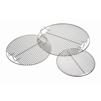 Heb je een nieuw bovenrooster voor je Weber houtskoolbarbecue nodig? Dan zit je met de Weber bovenrooster ø 57 cm helemaal goed. Dit ronde rooster is speciaal gemaakt voor de houtskoolbarbecues met een diameter van 57cm. Het rooster is gemaakt van roestvaststaal (RVS), wat roest zoveel mogelijk tegenhoudt en je makkelijk schoonmaakt met een schuurspons of de Weber borstel T-vorm. Heb je een andere maat bovenrooster nodig? Geen probleem, want GAMMA verkoopt de Weber bovenroosters ook in een diameter van 37cm en 47cm. Kortom: perfect grillen doe je op dit bovenrooster voor Weber houtskoolbarbecues.