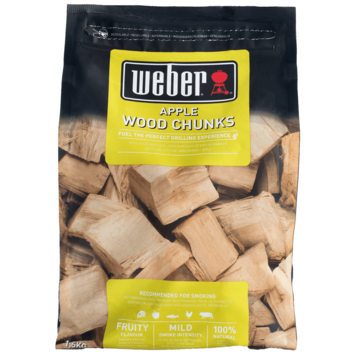 Wanneer je je barbecue wil gebruiken om te roken zijn houtblokjes ideaal. De Weber Houtblokjes Apple 1,5 kg geven namelijk een overheerlijke frisse lichte rooksmaak af. De houtblokjes zijn 100% natuurlijk en ideaal voor lichtere gerechten.