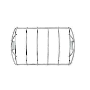 Roestvrijstalen rek dat vijf spareribs kan houden, het vlees gaart op deze manier gelijkmatig. Geschikt voor houtskoolbarbecues vanaf 57cm. En voor gasbarbecues vanaf de Q200/2000 serie.