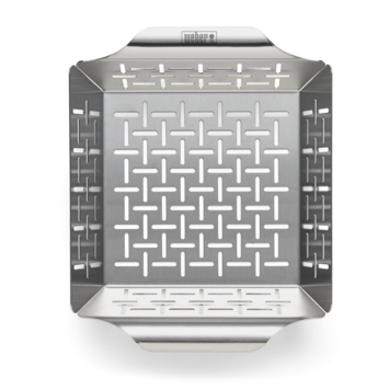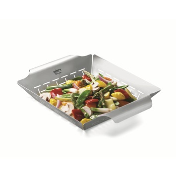 De groentekorf is ideaal om groenten mee te bereiden op de bbq. Snijd de groenten (in blokjes) en doe ze in de groentekorf. Plaats de groentekorf bij het hoofdgerecht op de barbecue. Hij is gemaakt van vervaardigd van roestvrij staal en beschikt over de volgende afmetingen; 6,0 (H) x 19,1 (B) x 24,0 (D) cm.