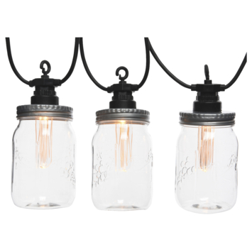 Deze LED weckpotjes verlichting met 10 lampen geeft een sfeervolle uitstraling en past in elke tuin of balkon. Deze feestelijke verlichting is makkelijk op te hangen en verlicht de omgeving op een creatieve manier. Met een lengte van 4.5 meter en klassiek warmee verlichting, is het een echte eye-catcher.