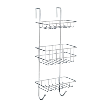 Met de Revigo doucherek Chroom van hoogwaardig staal creëer je eenvoudig extra opbergruimte in de douche zonder te boren. Het doucherek kan eenvoudig aan de douchewand worden ophangen door middel van twee haken. De afstand tussen de haken is 15 cm. Het doucherekje in zwart bestaat uit drie mandjes met drie verschillende hoogtes. Zo er is altijd plaats voor verschillende soorten producten zoals zeep, shampoo of spons. Onderaan de doucherek zijn er nog een twee haken voor het ophangen van bijvoorbeeld een borstel of washandje. De Revigo doucherek is naast chroom ook beschikbaar in zwart gelakt staal.
