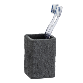 Met de tandenborstelbeker Villata grijs in natuursteenlook creëer je een aangename en gezellige sfeer in je badkamer. De Villata badkamerserie is gemaakt van Polyresin ofwel Polystone; een mix van gemalen natuursteen wat wordt vermengd met een vloeibare kunsthars. De beker is daardoor zo hard als steen, vochtbestendig en kleurecht. Ideaal om in je badkamer te gebruiken.Je kan de Villata badkamerserie stijlvol uitbreiden met de Villata zeepdispenser en de wc-set.