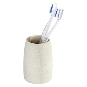 Wenko Tandenborstelhouder Goa Beige in natuurlijk design. Gemaakt van hoogwaardig Polyresin. In de kleur Wit. Afmeting: Ø 7.4 x 10.5 cm