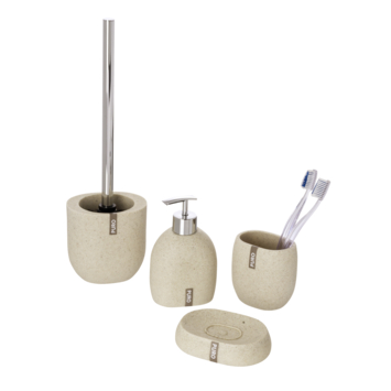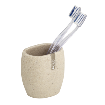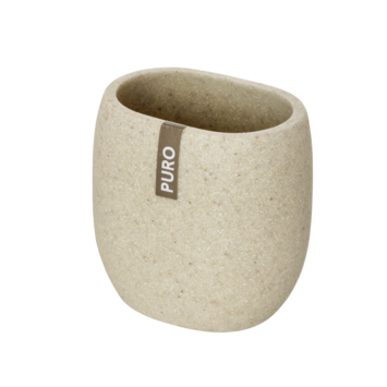 Met de tandenborstelbeker Puro beige in natuursteenlook creëer je een elegante touch toe aan je badkamer. De Puro badkamerserie is gemaakt van Polyresin ofwel Polystone; een mix van gemalen natuursteen wat wordt vermengd met een vloeibare kunsthars. De beker is daardoor zo hard als steen, vochtbestendig en kleurecht; Ideaal om in je badkamer te gebruiken.De tandenborstelbeker kan stijlvol gecombineerd worden met bijpassende producten uit de Puro serie.