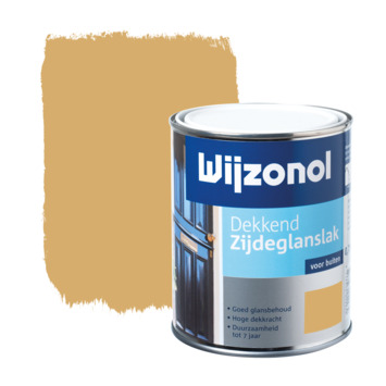 Wijzonol lak dekkend korengeel zijdeglans 750 ml is een dekkende zijdeglans verf op terpentinebasis. Deze aflak is de ideale afwerking voor goed buitenschilderwerk op uw houten kozijnen, ramen, deuren en gevelbetimmering. De makkelijk verwerkbare verf is toepasbaar op onbehandeld hout, bestaand schilderwerk en voorbehandeld metaal en kunststof. De inhoudsmaat van 750 ml is geschikt voor het verven van 9 tot 11 m2. De Wijzonol lak dekkend zijdeglans heeft een goed glansbehoud, goede vloei en een hoge dekkracht.