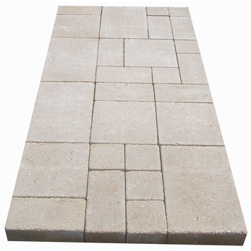 Oker wildverband trommel (10x10x6cm ; 10x20x6cm; 20x20x6cm). Door de verschillende trommel formaten creert u tuinpad, terras of oprit met een rustiek en speelse uitstraling