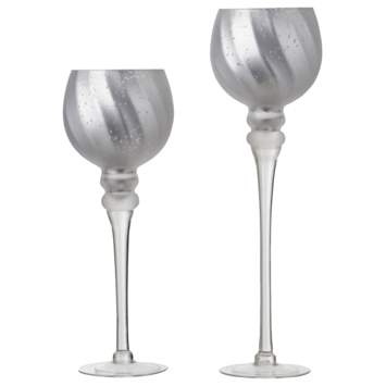 Windlicht op voet gemaakt van glas. 2 stuks verpakt in een mooie giftbox, leuk om cadeau te geven! Afmetingen; h42xd12,5 cm