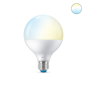 Deze slimme bolvormige WiZ LED-lamp met instelbaar wit licht maakt het dagelijks leven gemakkelijker. Stel verschillende tinten warmwit tot koelwit licht in die je helpen ontspannen of juist concentreren. Je kunt timers instellen die je lampen automatisch in- of uitschakelen gebaseerd op jouw dagritme. Bijvoorbeeld helder wit licht in de ochtend en zacht warm licht in de avond. Je kunt ze bedienen met je smartphone of stem, zelfs als je niet thuis bent. WiZ lampen werken op je eigen wifinetwerk. Meer heb je niet nodig. Deze lamp heeft een E27-fitting, en past dus in de meeste lampen met grote fitting.