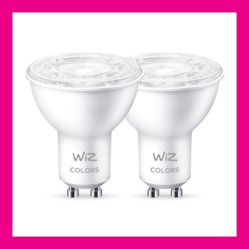 In dit pakket vind je twee slimme WiZ LED-spots. Breng sfeer in huis met warm- tot koelwit licht of kies uit miljoenen kleuren in de WiZ app. Met timers kan je de lampen automatisch in- of uitschakelen, precies volgens jouw dagritme. Gebruik helder wit licht om je te concentreren in de ochtend, en warmwit licht om 's avonds te ontspannen. WiZ lampen werken via je eigen wifinetwerk. Na installatie kan je ze meteen bedienen met je smartphone of stem, zelfs wanneer je niet thuis bent. Deze twee lampen hebben een GU10-fitting en gaan vaak perfect samen met je in- of opbouwspots.