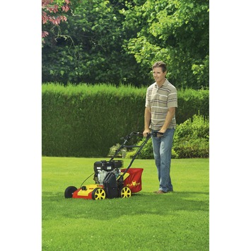 De Wolf-Garten benzine verticuteermachine VA357B is een krachtige benzine verticuteerder. De 14 dubbele messen zorgen voor een optimale behandeling tegen mos en gazonvilt. De machine beschikt over een B&S 500 serie motor met een vermogen van 127cc en 3600 tpm. De verticuteermachine VA357B beschikt over een opvangzak van 45 liter en heeft een werkbreedte van 35 centimeter. De verticuteermachine is compact op te bergen dankzij de ergonomische inklapbare duwboom.