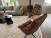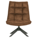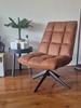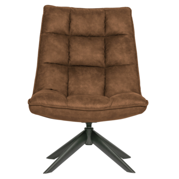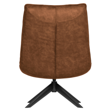 De WOOOD draaifauteuil Jouke heeft een stoere uitstraling en een comfortabele zit. De rugleuning en zitting zijn bekleed in een cognackleur van een PU lederen stof (100% polyester). Het onderstel is van zwart gepoedercoat metaal en heeft een stijlvolle uitstraling.