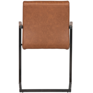 Bas is een moderne eetkamerstoel de zitting is bekleed met een vintage PU leren stof. De zitting heeft een ingestikte ribbel structuur. Het frame van de stoel is van metaal en afgewerkt met een cognac poedercoating.
