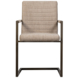De zitting is bekleed met een geweven stof die zacht aanvoelt en tegen een stootje kan. Het metalen onderstel geeft de stoel een stabiele basis. Door de zithoogte van 49, de zitdiepte van 44 en de zitbreedte van 45 zit je ontspannen aan tafel.