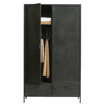 Met de stoere 2-deurs garderobekast Ronja van WOOOD haal je een unieke en eigentijdse kast in huis! De kast Ronja is gemaakt van zwart metaal, heeft een industriële en vintage uitstraling en past perfect in het interieur van nu.