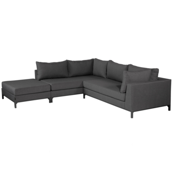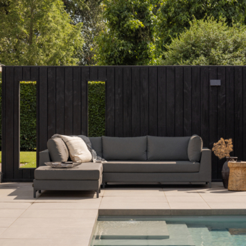 De hoek is aan de linkerzijde geplaatst, ideaal voor een ruimtelijke en uitnodigende opstelling. Dankzij de diepe zitting en het grote loungegedeelte kun je heerlijk ontspannen, terwijl de lage arm- en rugleuningen zorgen voor een moderne en open uitstraling. Deze bank is perfect voor zowel grote tuinen als knusse terrassen waar je een luxe zithoek wilt creëren.