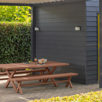 Om de tafel in topconditie te houden, raden we aan deze te beschermen tegen extreme weersomstandigheden. Gebruik een beschermhoes bij langdurige regenval of plaats de tafel tijdens de wintermaanden binnenshuis. De Delta picknicktafel wordt geleverd als bouwpakket en is eenvoudig te monteren. Creëer een moderne en uitnodigende buitenruimte met deze stijlvolle tafel.