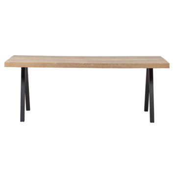 Deze mangohouten Tablo tafel heeft een lengte van 180 cm en een breedte van 90 cm, zodat je er gemakkelijk met 6-8 personen aan kunt zitten. Het blad is 5,5 cm dik. Het mango hout is afgewerkt met een lime wash finish, waardoor het mango hout een soort white wash laagje krijgt. Deze afwerking verbetert de algehele uitstraling van het hout en benadrukt tegelijkertijd de schoonheid van de houtnerf. Het tafelblad heeft hierdoor een stoer en robuust uiterlijk met een lichte uitstraling.