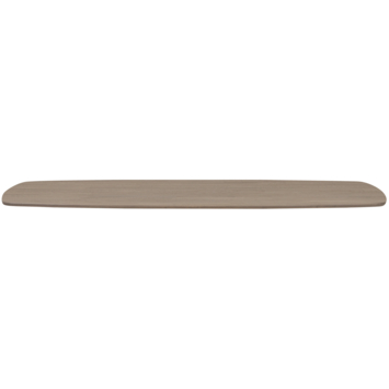 Het blad is gemaakt van stroken verlijmd eikenhout met vingerlasverbindingen die zorgen voor een natuurlijk en speels patroon. Onbehandeld eikenhout heeft een lichtbruine tint met een zachte gele gloed en een duidelijke nerftekening. Omdat hout een natuurproduct is, heeft ieder blad een eigen karakter. De licht geborstelde afwerking benadrukt de nerven en versterkt de uitstraling van de kleur. Voor dit blad is FSC-gecertificeerd eikenhout toegepast.