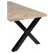 Het tafelblad is vervaardigd uit massief mangohout en afgewerkt met een lime wash behandeling. Deze subtiele white wash laag accentueert de houtnerf en geeft het blad een stoer maar tegelijk fris uiterlijk.